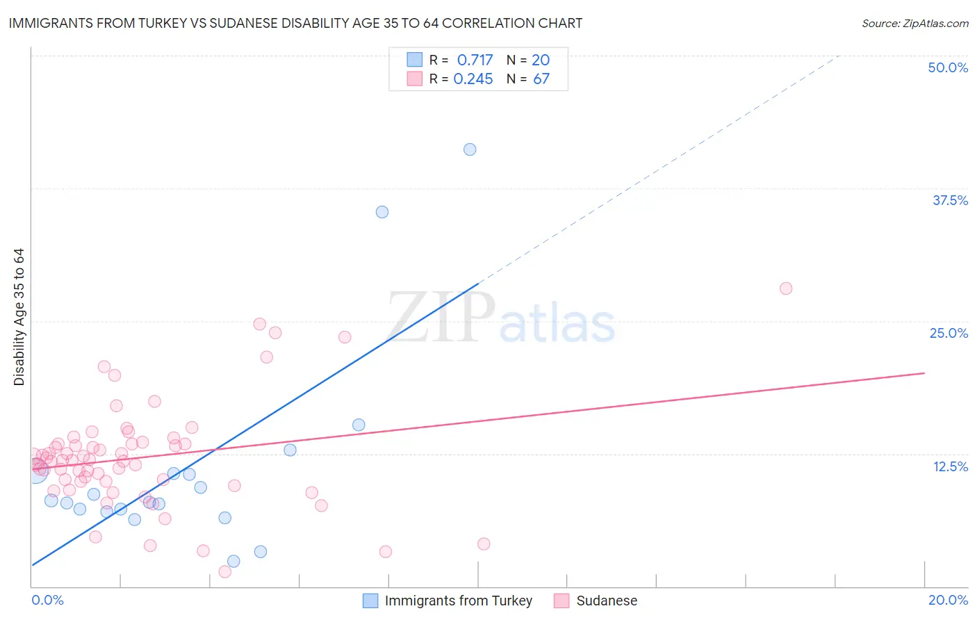 Immigrants from Turkey vs Sudanese Disability Age 35 to 64 Correlation Chart