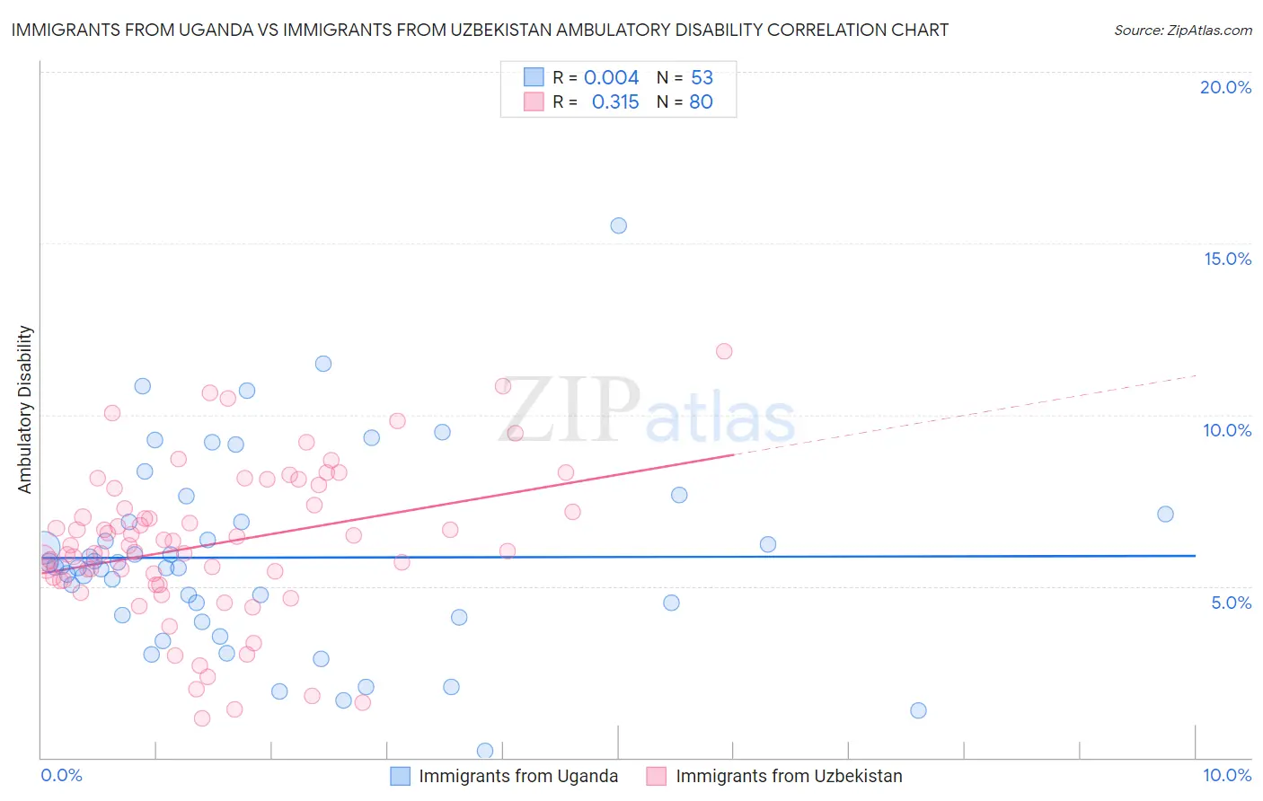 Immigrants from Uganda vs Immigrants from Uzbekistan Ambulatory Disability Correlation Chart