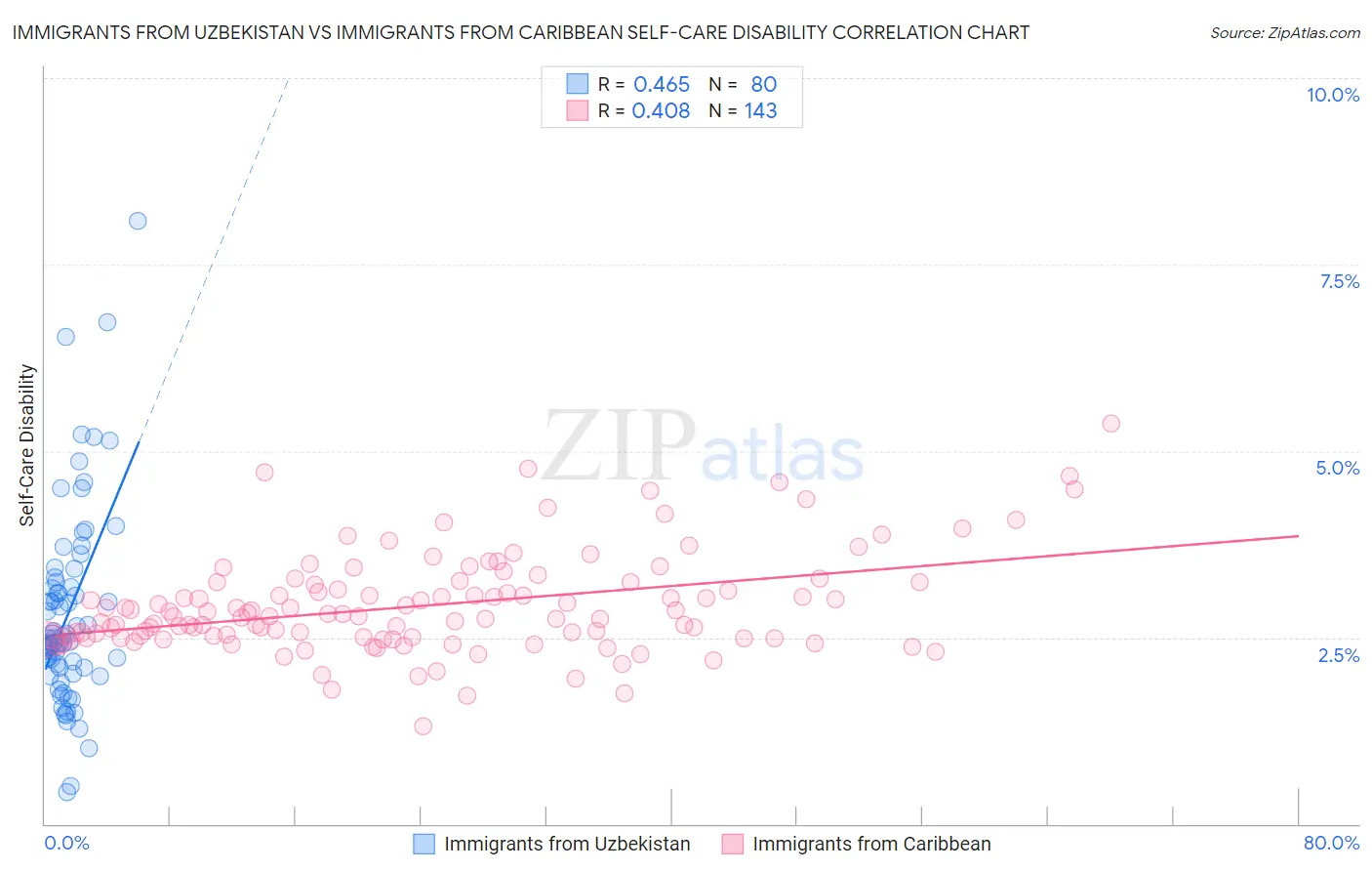 Immigrants from Uzbekistan vs Immigrants from Caribbean Self-Care Disability Correlation Chart