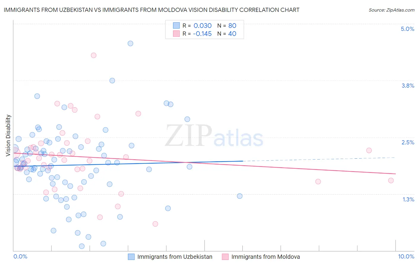 Immigrants from Uzbekistan vs Immigrants from Moldova Vision Disability Correlation Chart