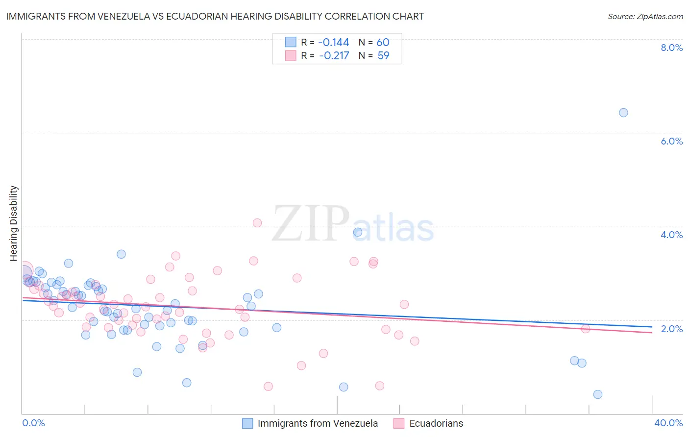 Immigrants from Venezuela vs Ecuadorian Hearing Disability Correlation Chart
