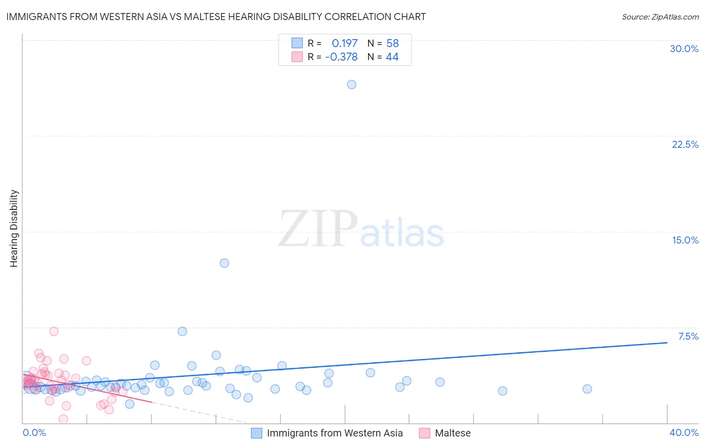 Immigrants from Western Asia vs Maltese Hearing Disability Correlation Chart