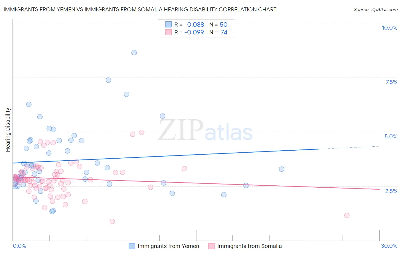 Immigrants from Yemen vs Immigrants from Somalia Hearing Disability Correlation Chart
