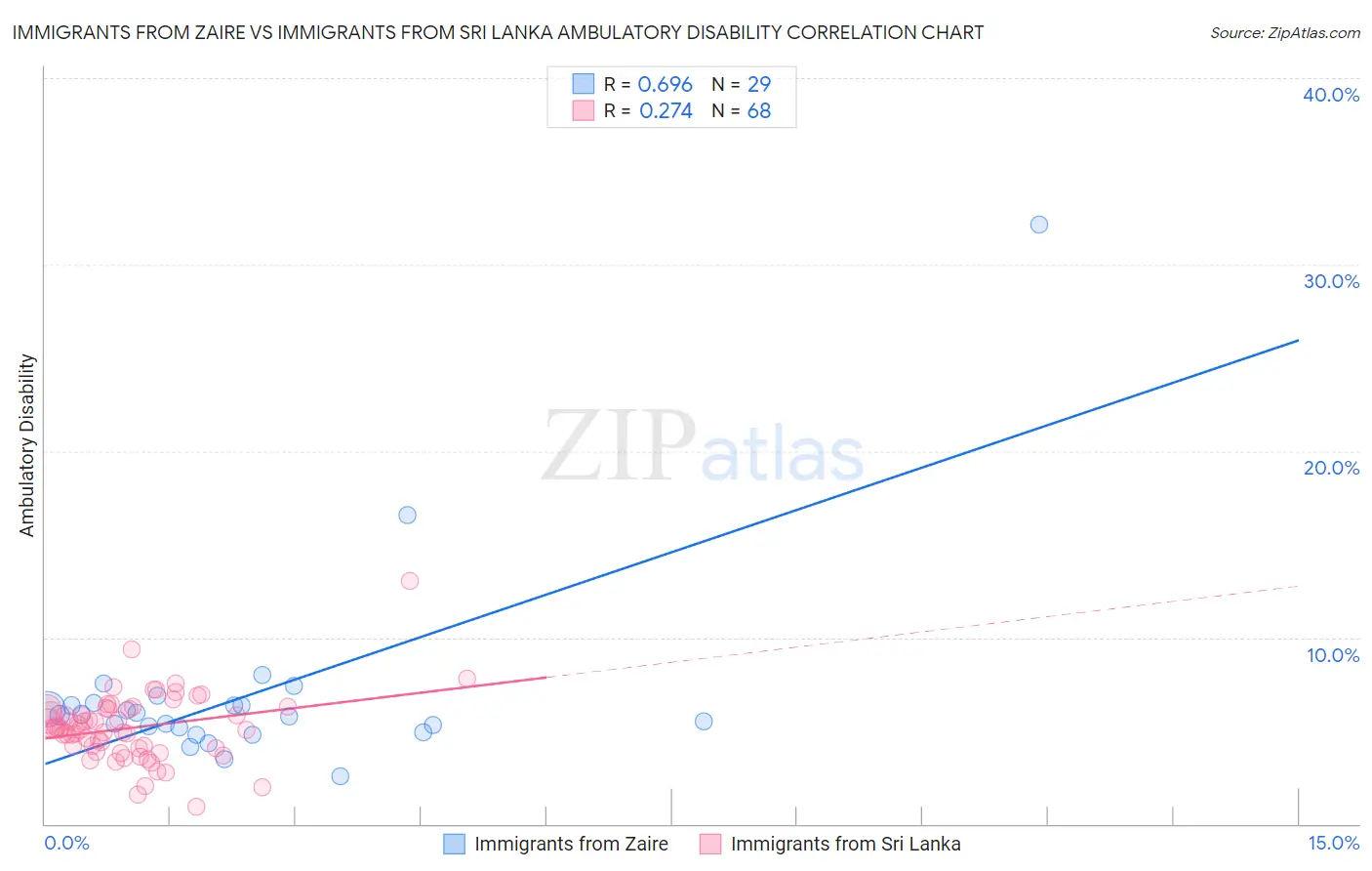 Immigrants from Zaire vs Immigrants from Sri Lanka Ambulatory Disability Correlation Chart