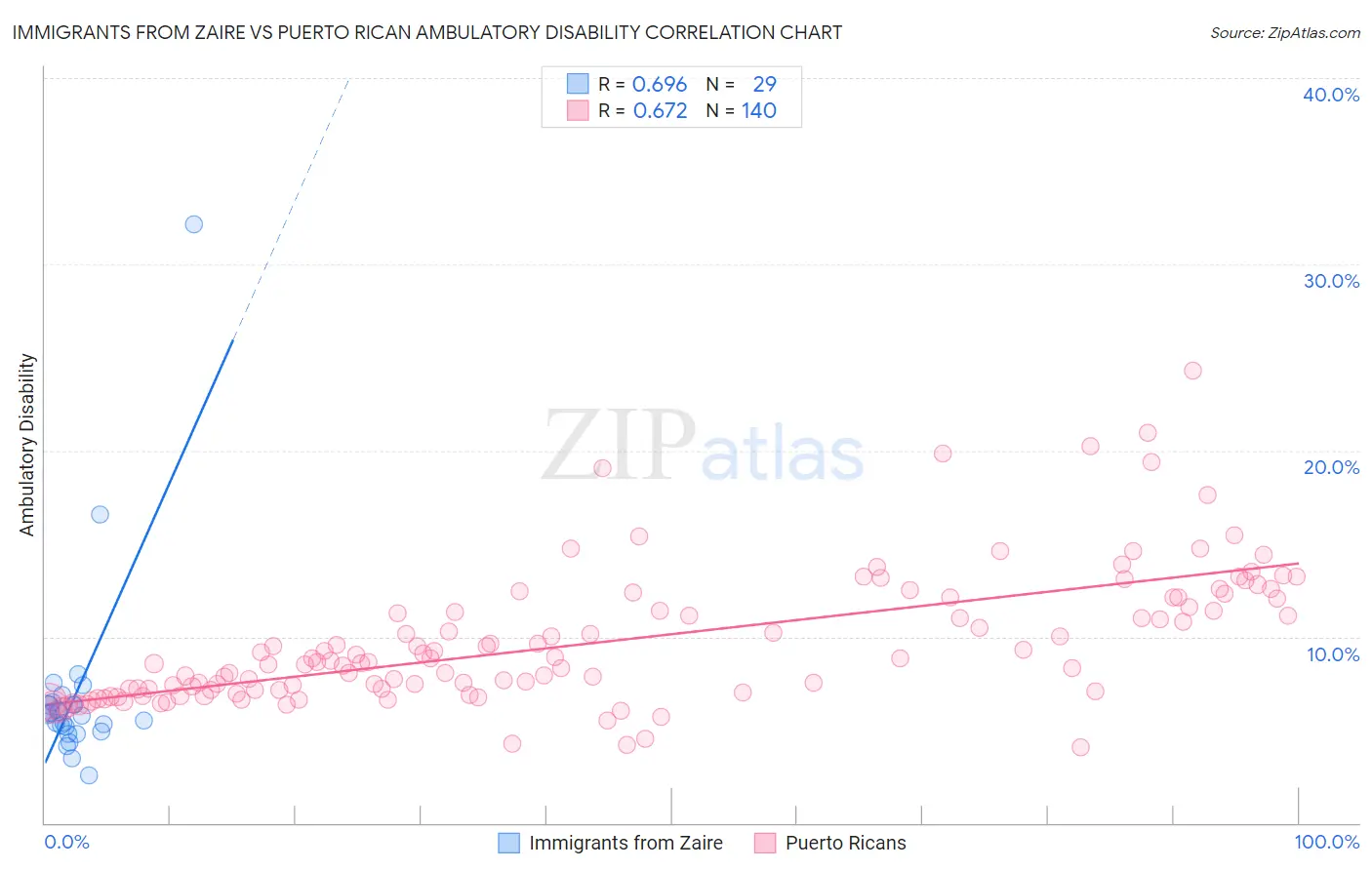 Immigrants from Zaire vs Puerto Rican Ambulatory Disability Correlation Chart