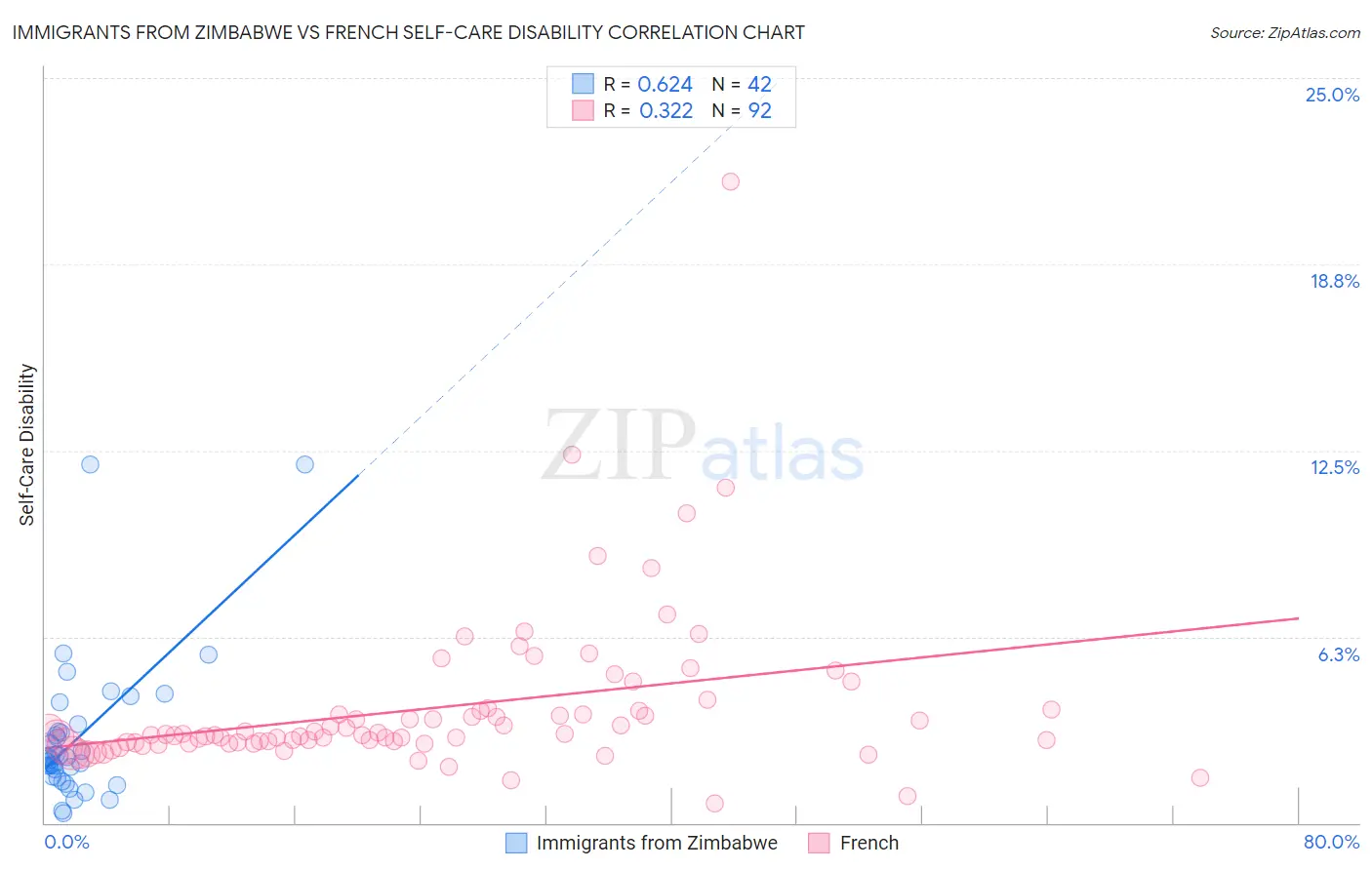 Immigrants from Zimbabwe vs French Self-Care Disability Correlation Chart