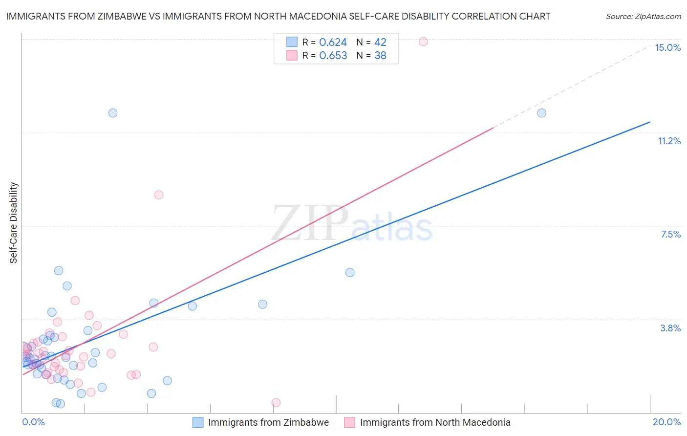 Immigrants from Zimbabwe vs Immigrants from North Macedonia Self-Care Disability Correlation Chart