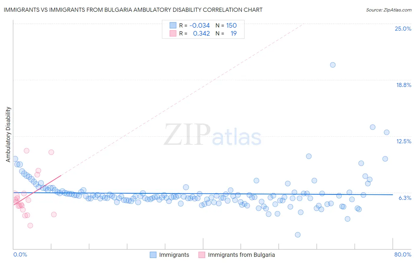 Immigrants vs Immigrants from Bulgaria Ambulatory Disability Correlation Chart