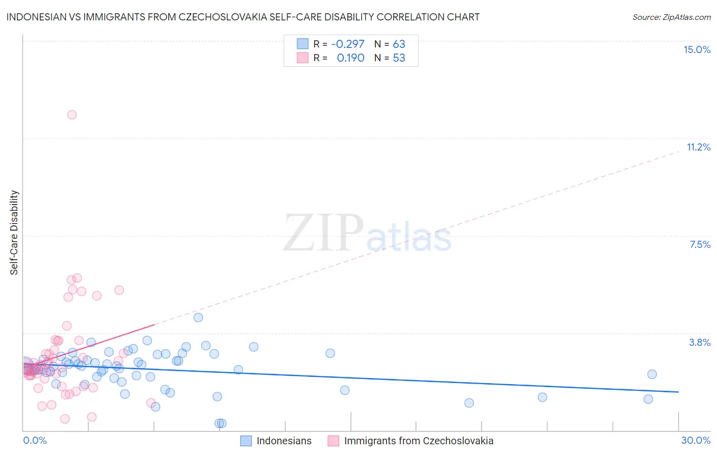 Indonesian vs Immigrants from Czechoslovakia Self-Care Disability Correlation Chart