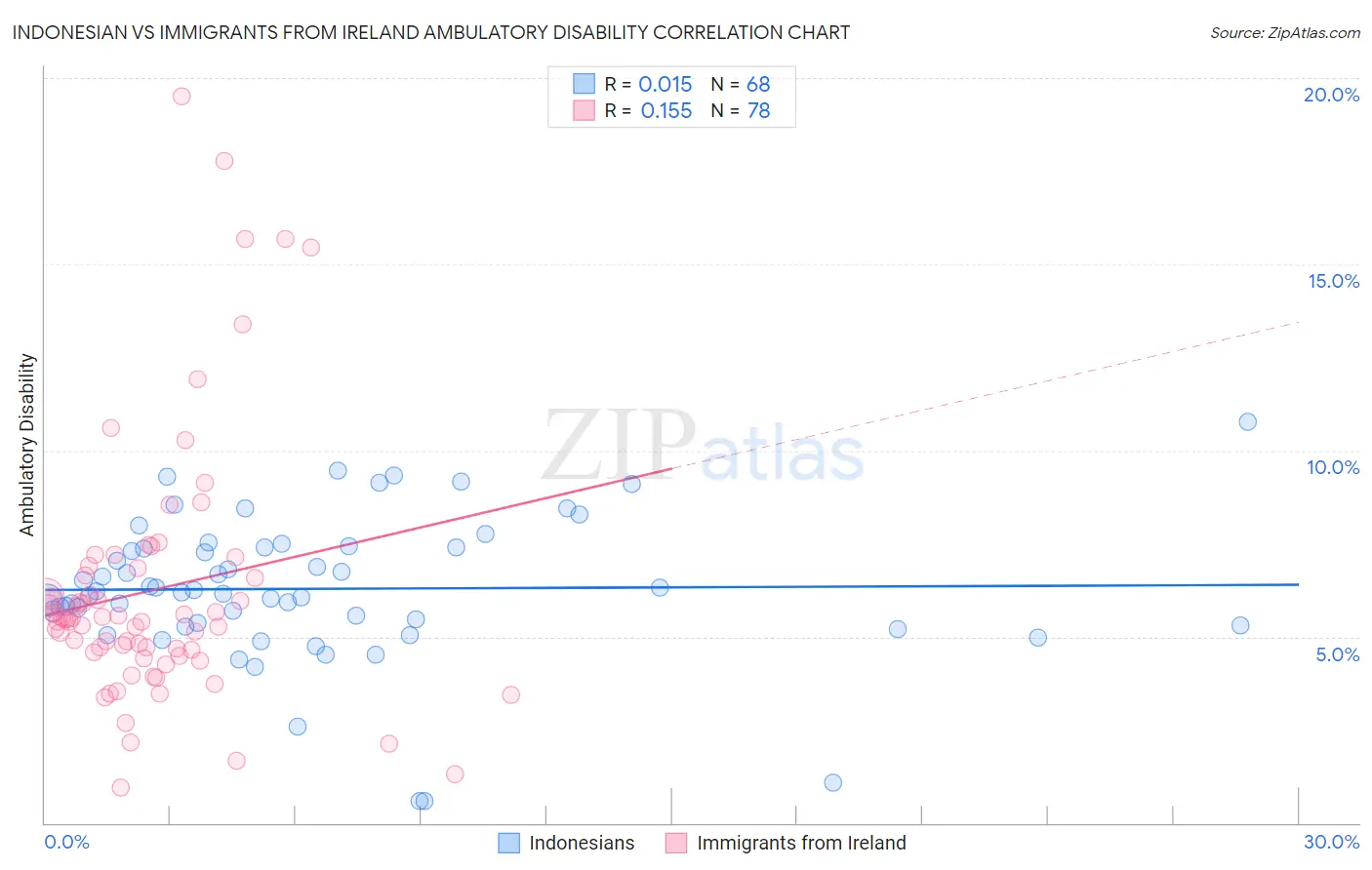 Indonesian vs Immigrants from Ireland Ambulatory Disability Correlation Chart