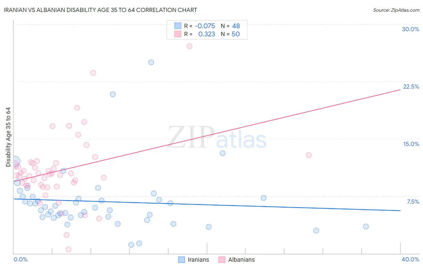 Iranian vs Albanian Disability Age 35 to 64 Correlation Chart