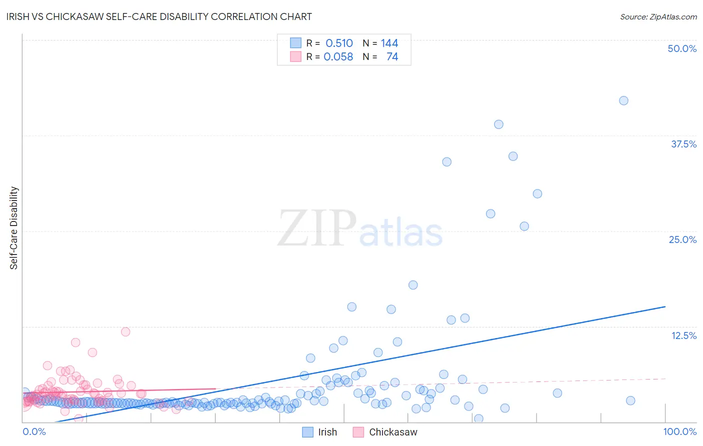 Irish vs Chickasaw Self-Care Disability Correlation Chart