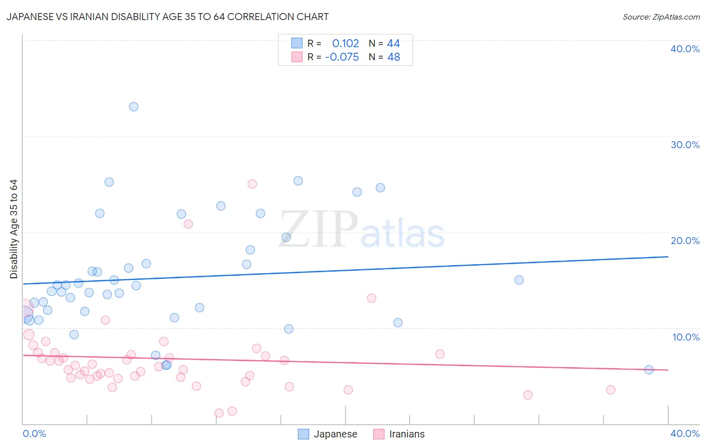 Japanese vs Iranian Disability Age 35 to 64 Correlation Chart