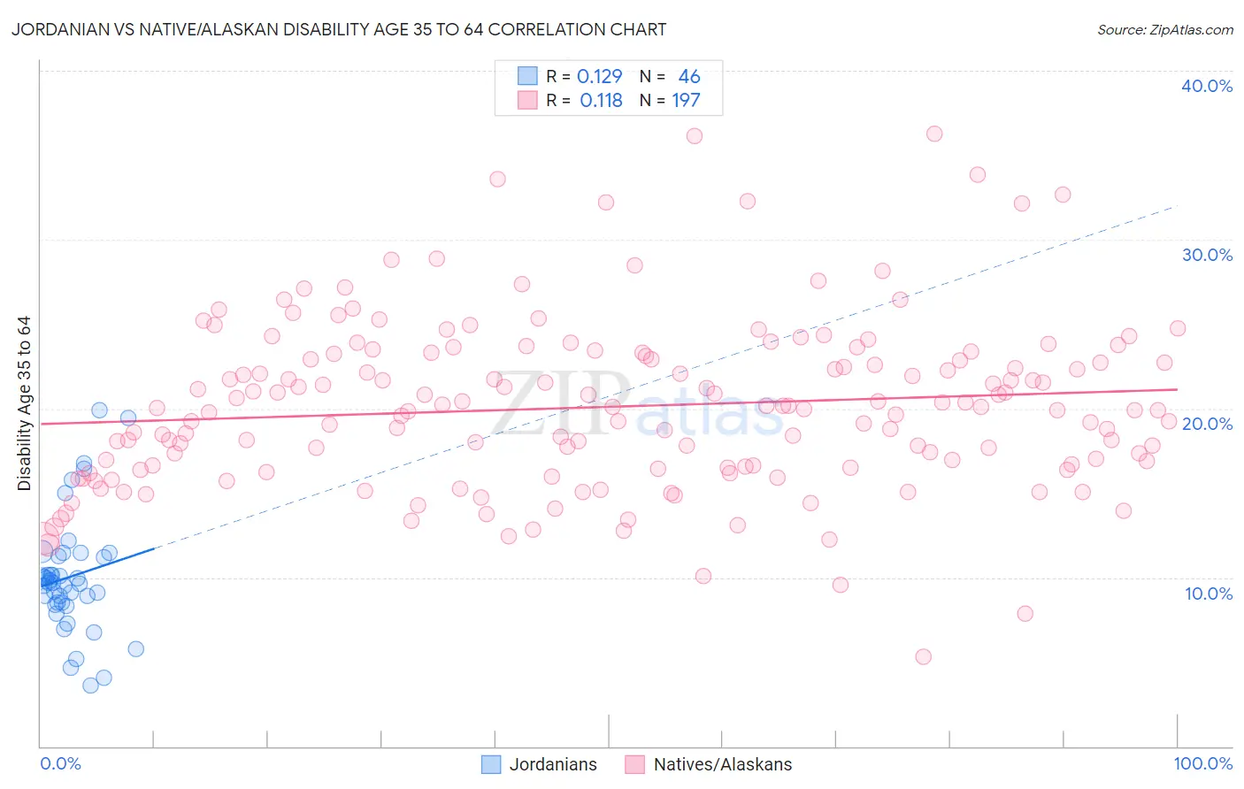 Jordanian vs Native/Alaskan Disability Age 35 to 64 Correlation Chart