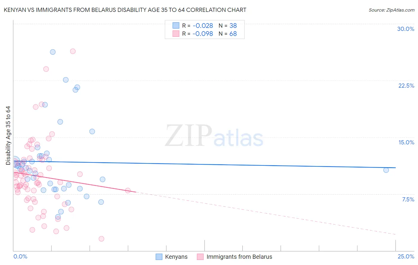 Kenyan vs Immigrants from Belarus Disability Age 35 to 64 Correlation Chart