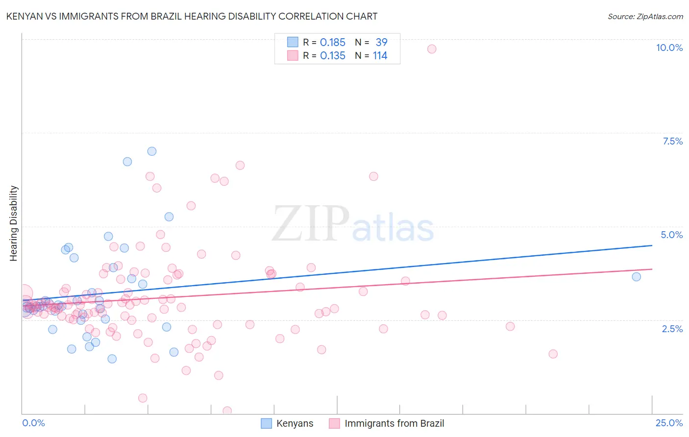 Kenyan vs Immigrants from Brazil Hearing Disability Correlation Chart