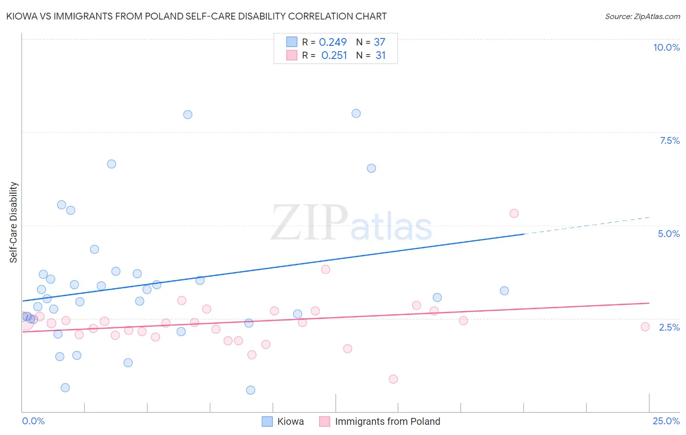 Kiowa vs Immigrants from Poland Self-Care Disability Correlation Chart
