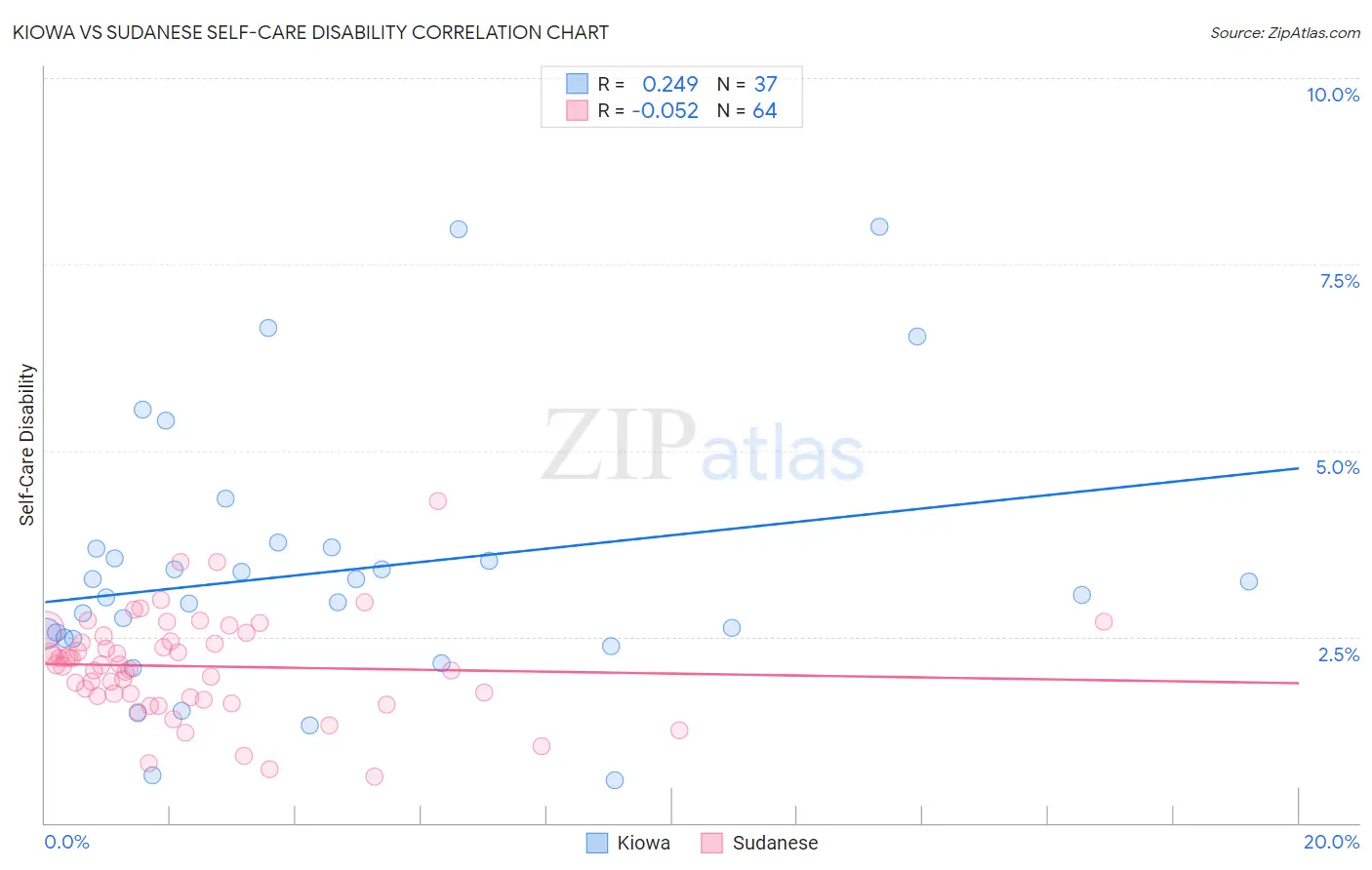 Kiowa vs Sudanese Self-Care Disability Correlation Chart