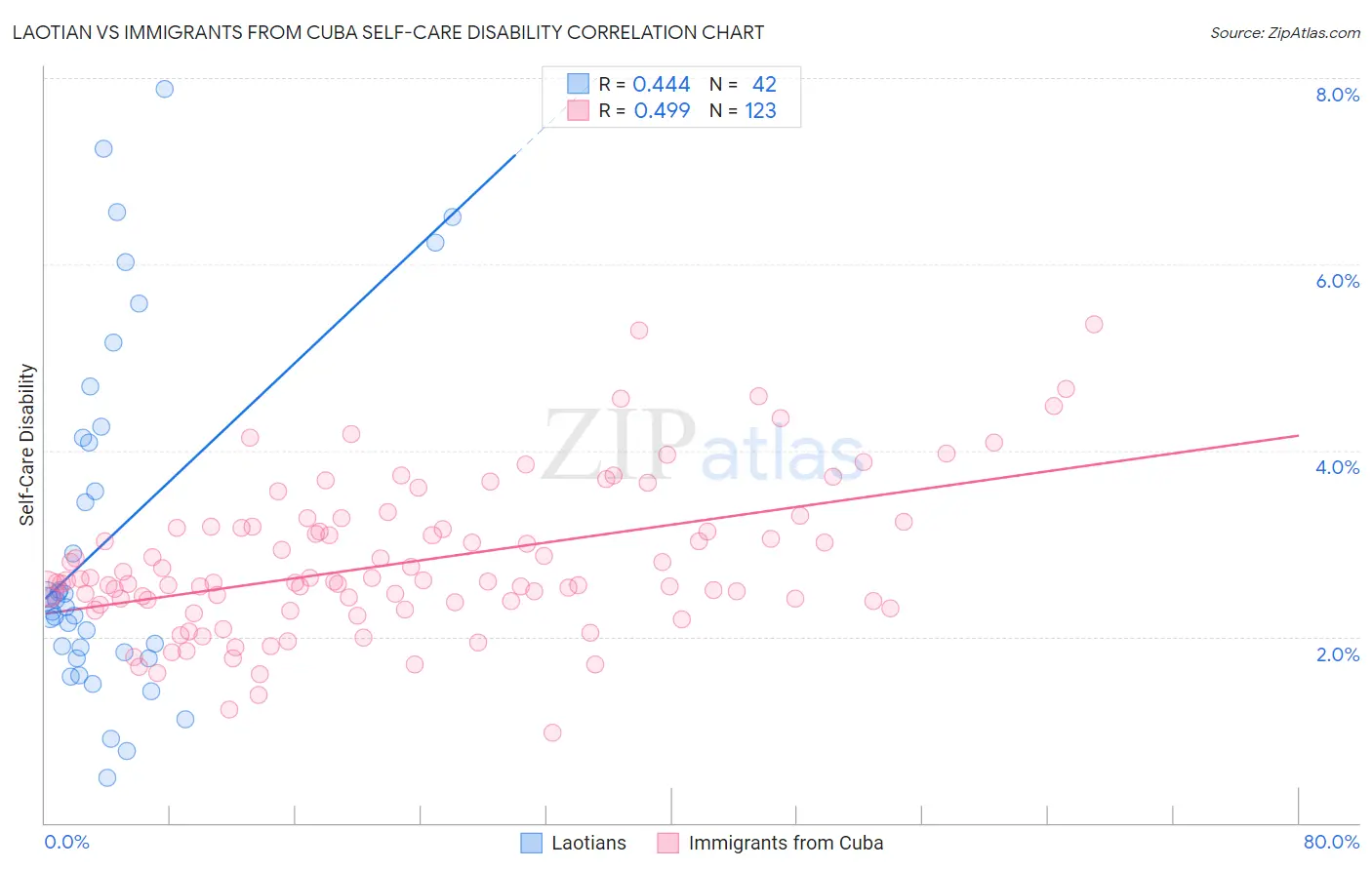 Laotian vs Immigrants from Cuba Self-Care Disability Correlation Chart
