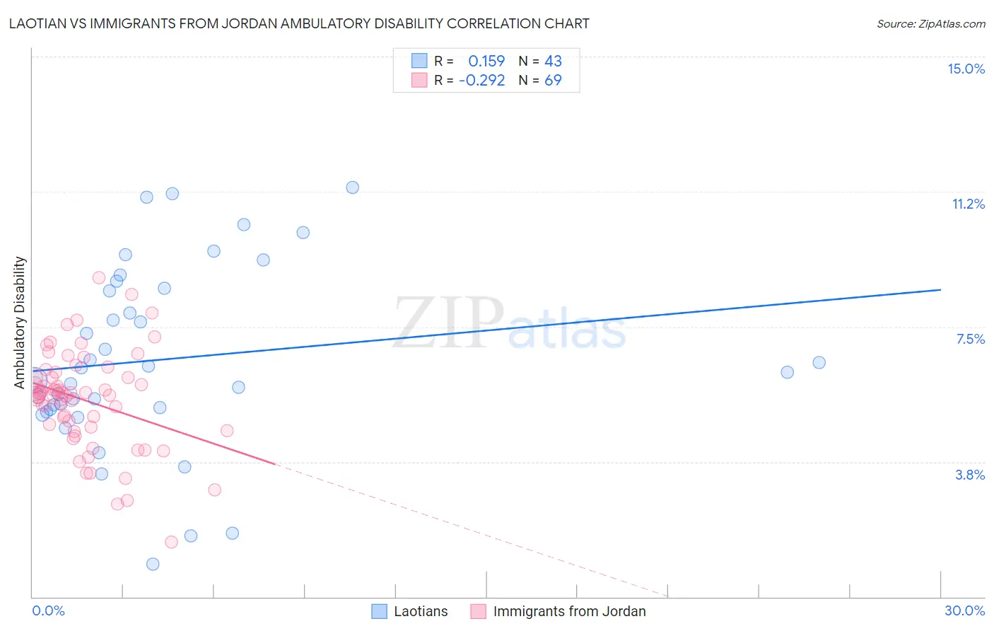 Laotian vs Immigrants from Jordan Ambulatory Disability Correlation Chart