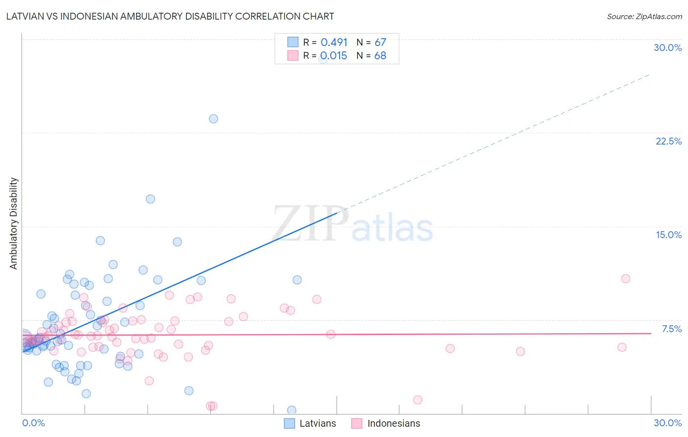 Latvian vs Indonesian Ambulatory Disability Correlation Chart