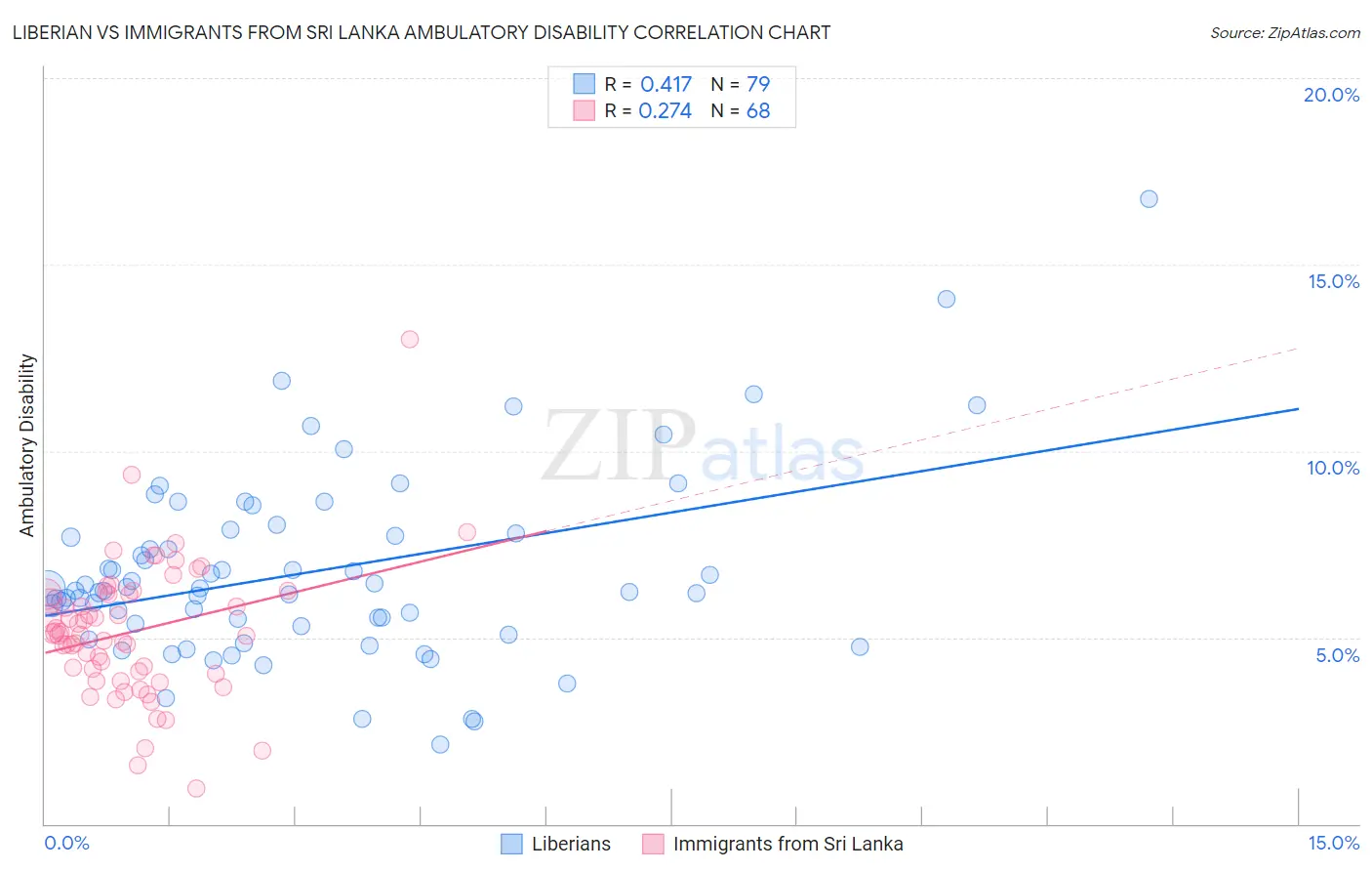 Liberian vs Immigrants from Sri Lanka Ambulatory Disability Correlation Chart