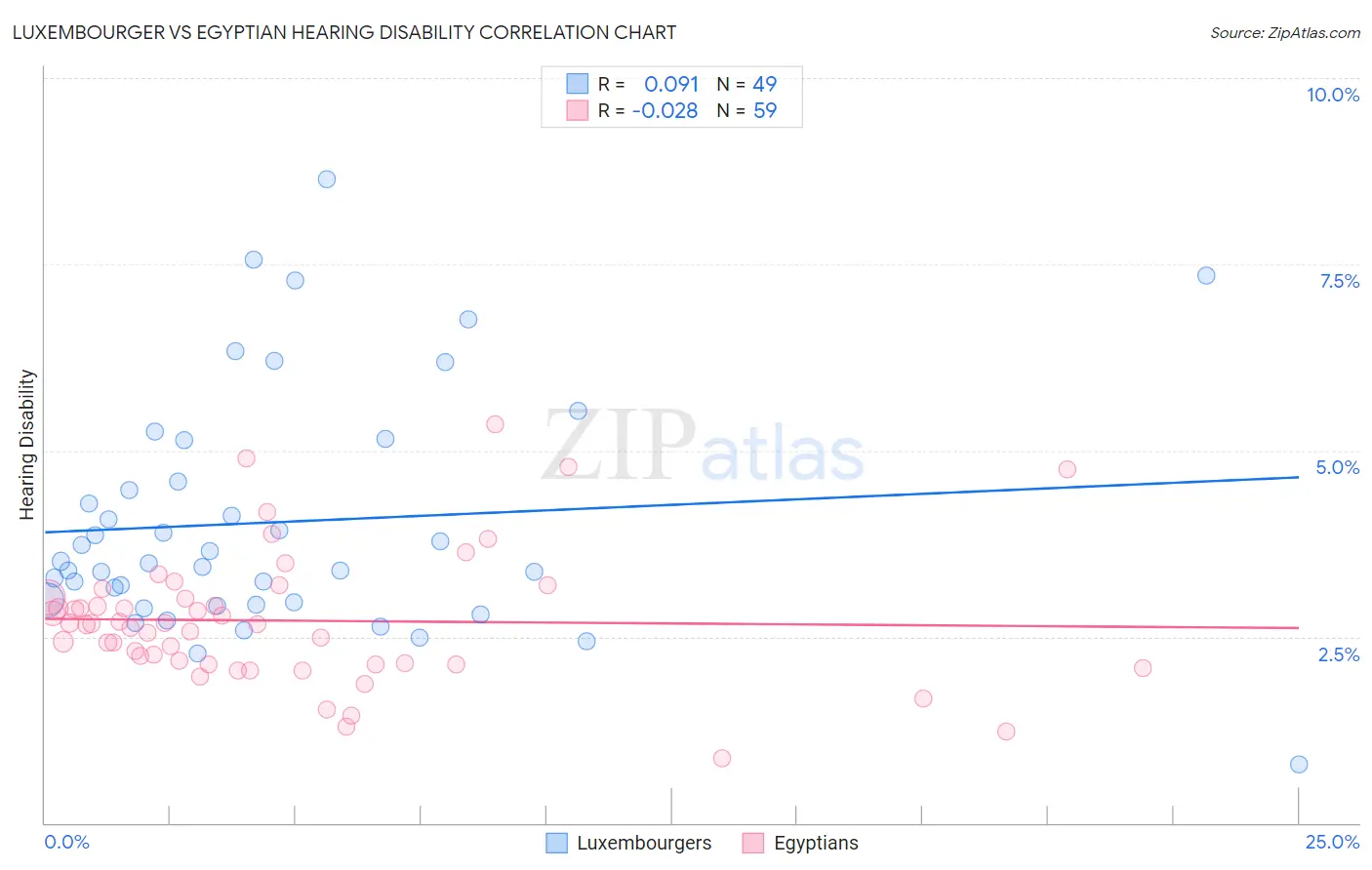 Luxembourger vs Egyptian Hearing Disability Correlation Chart