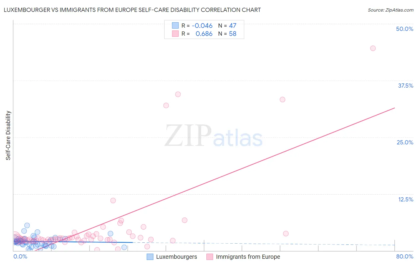 Luxembourger vs Immigrants from Europe Self-Care Disability Correlation Chart