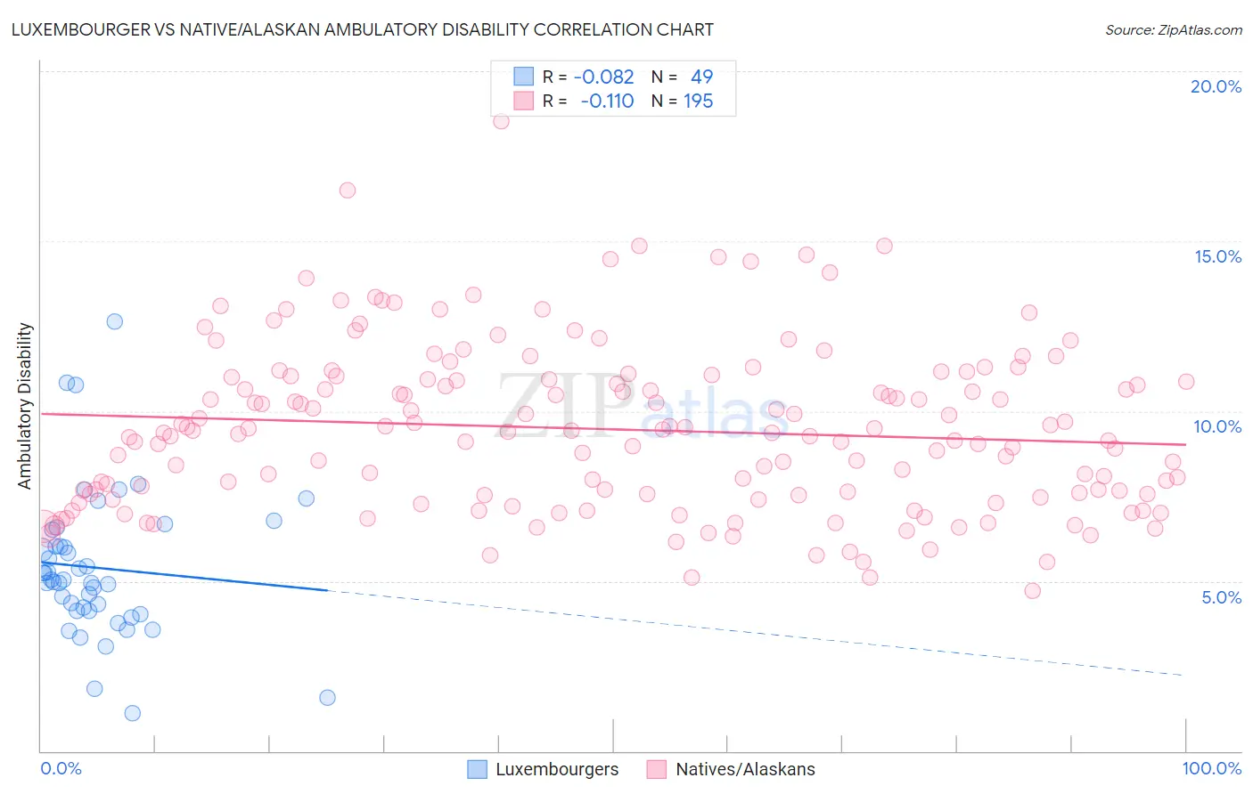 Luxembourger vs Native/Alaskan Ambulatory Disability Correlation Chart