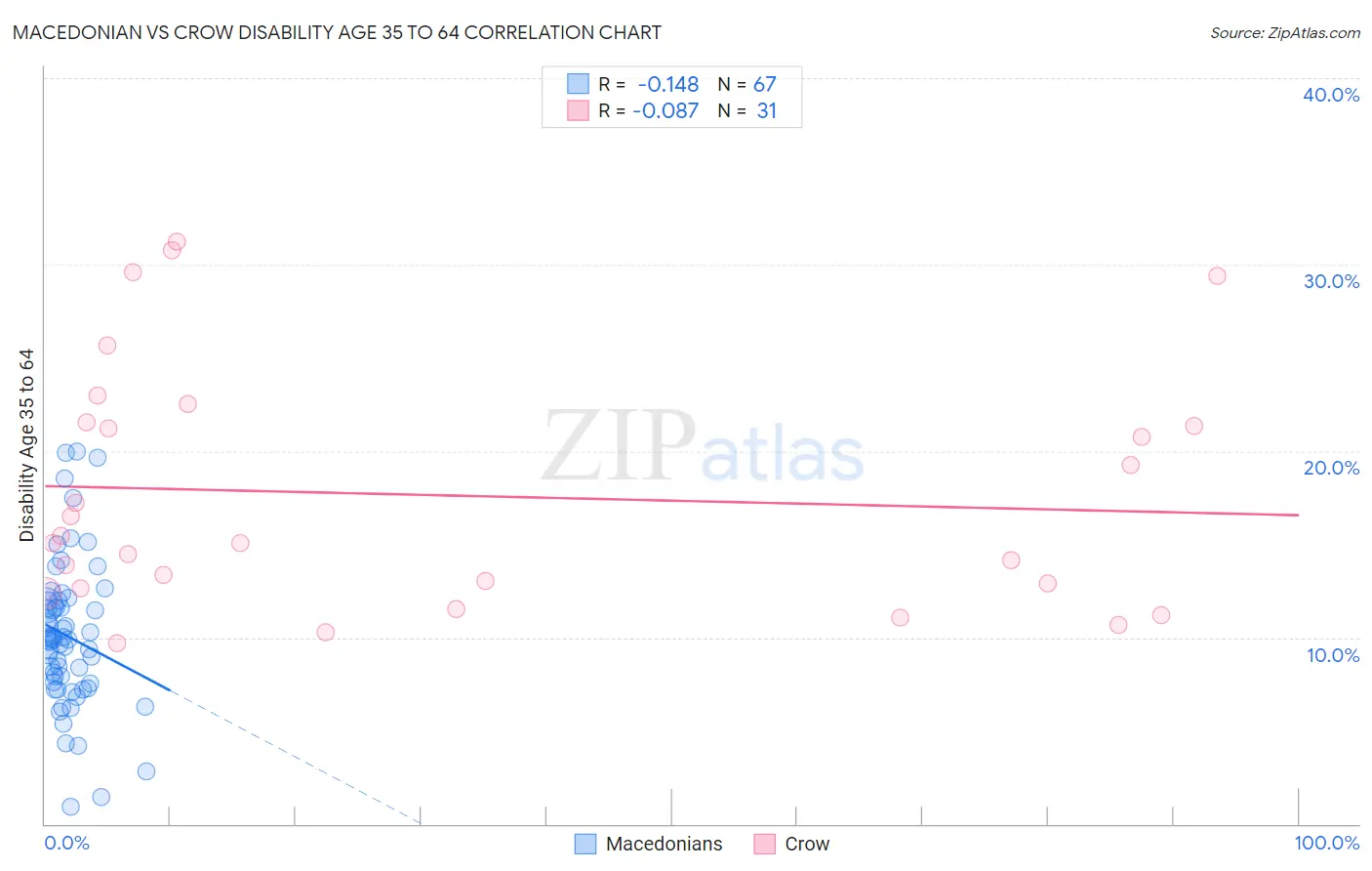 Macedonian vs Crow Disability Age 35 to 64 Correlation Chart