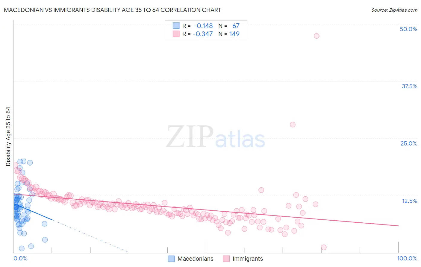 Macedonian vs Immigrants Disability Age 35 to 64 Correlation Chart