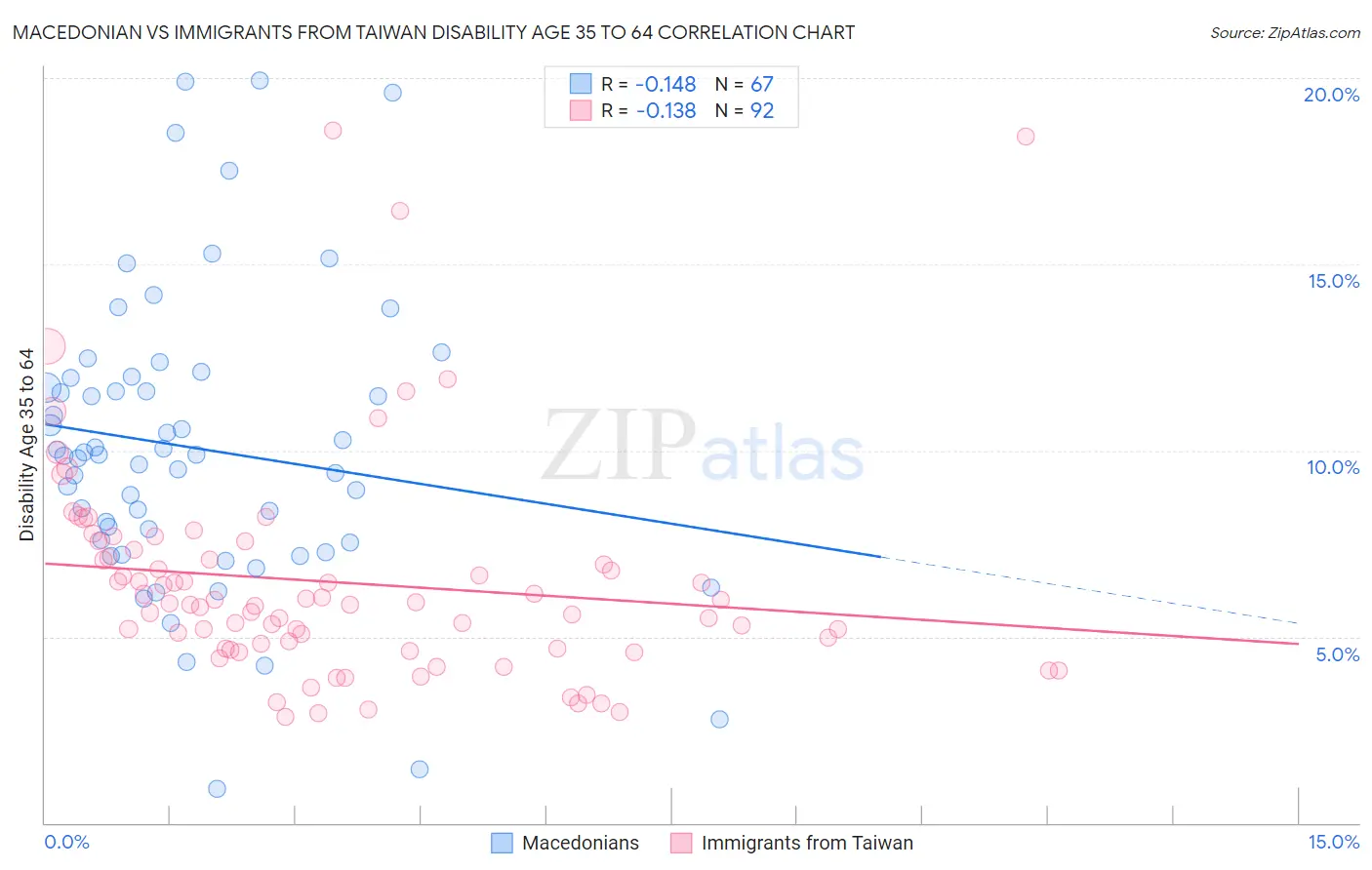 Macedonian vs Immigrants from Taiwan Disability Age 35 to 64 Correlation Chart