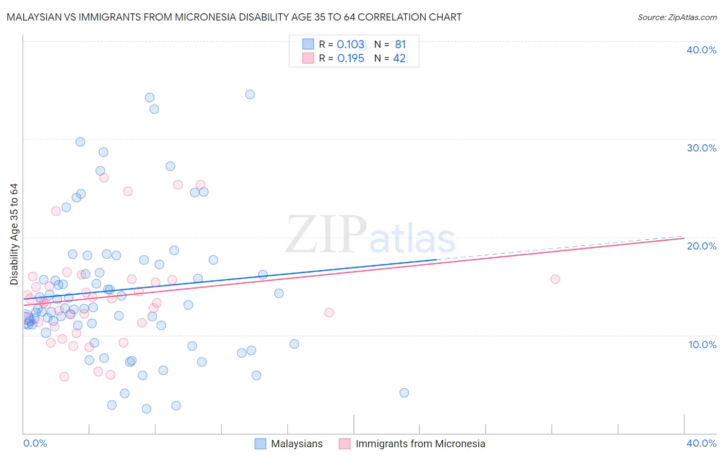 Malaysian vs Immigrants from Micronesia Disability Age 35 to 64 Correlation Chart