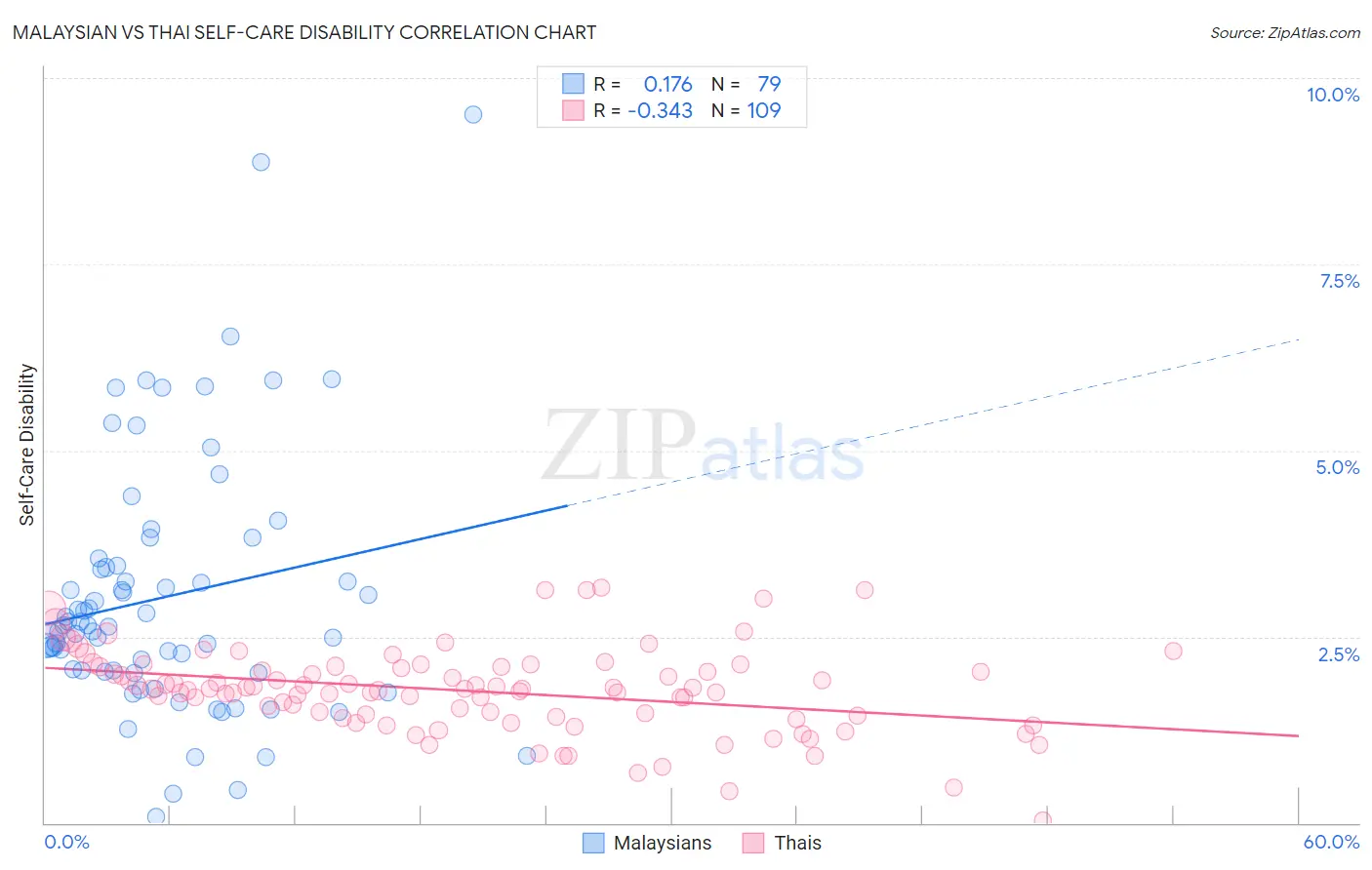 Malaysian vs Thai Self-Care Disability Correlation Chart