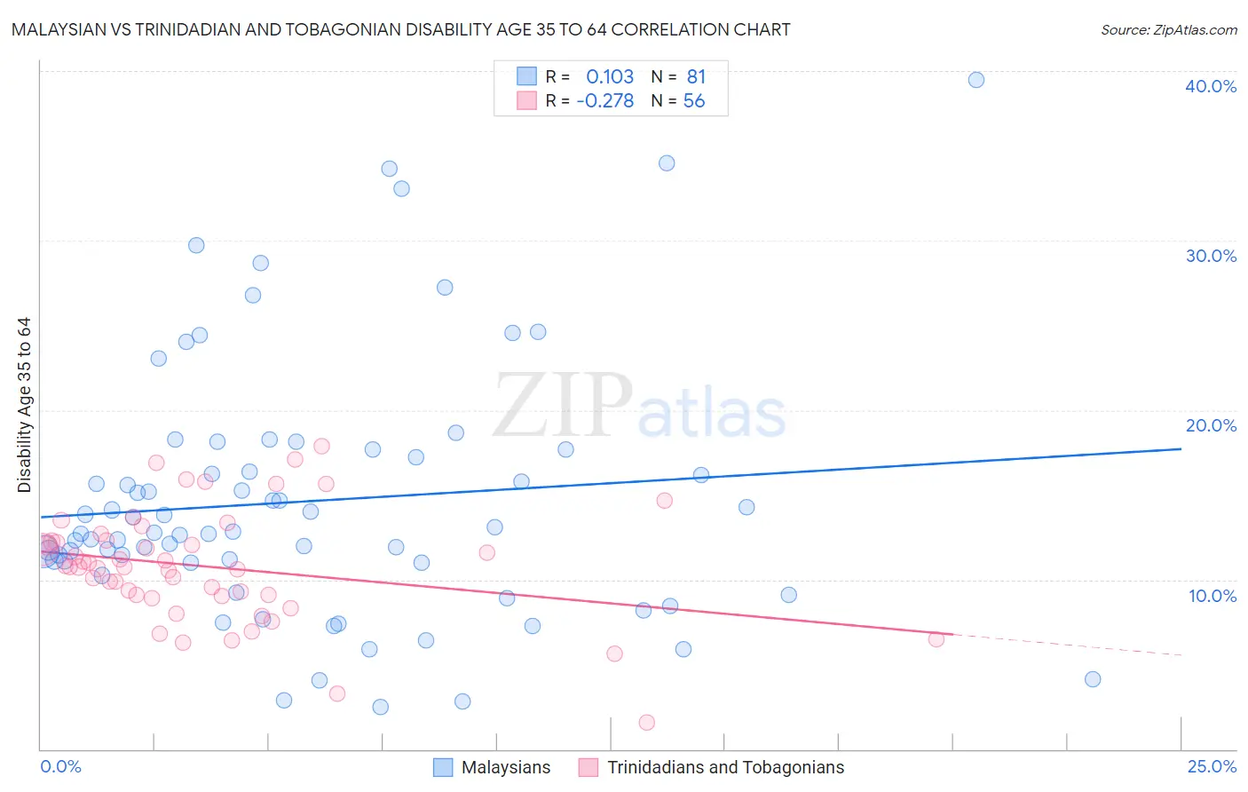 Malaysian vs Trinidadian and Tobagonian Disability Age 35 to 64 Correlation Chart