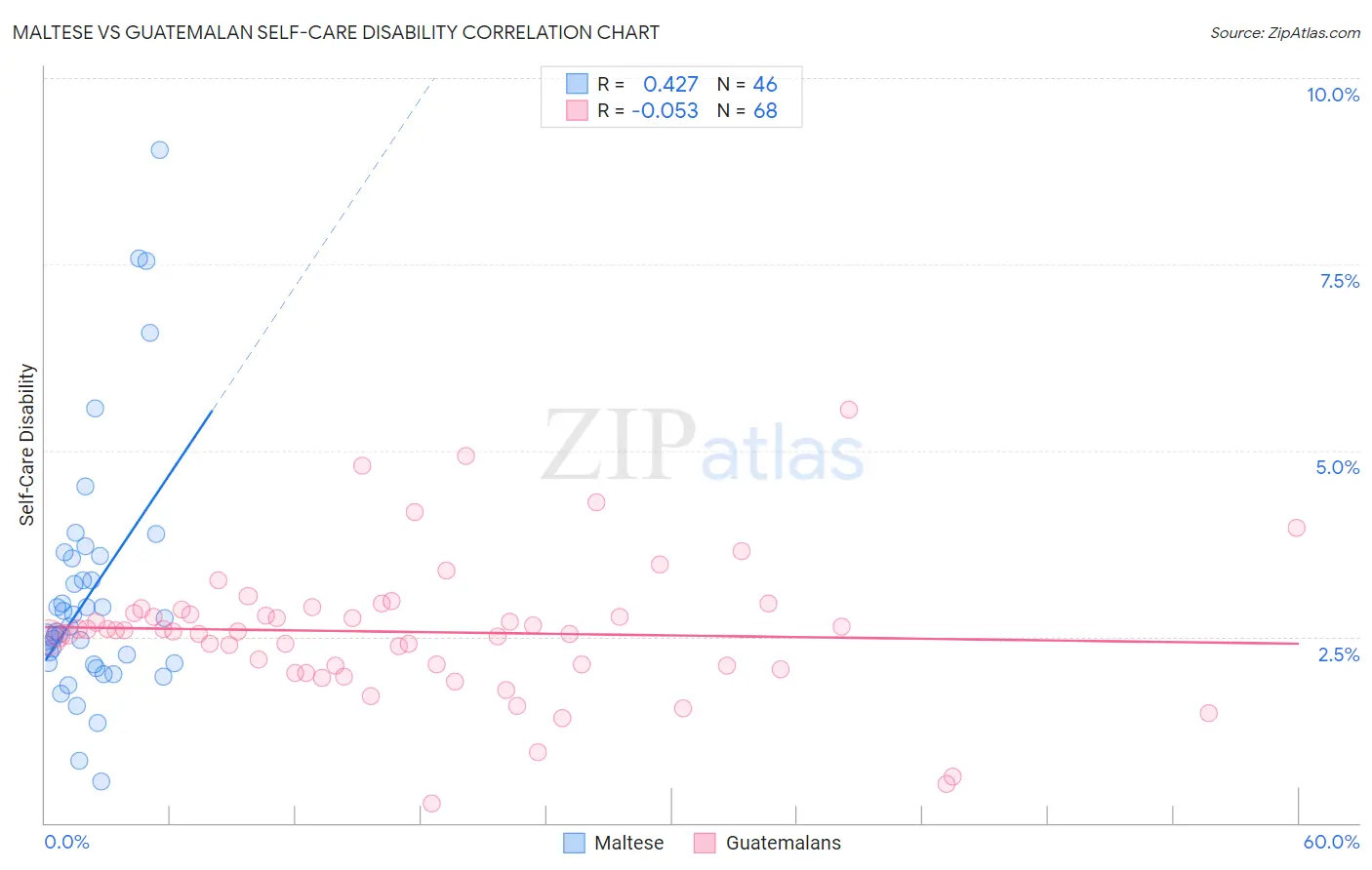 Maltese vs Guatemalan Self-Care Disability Correlation Chart