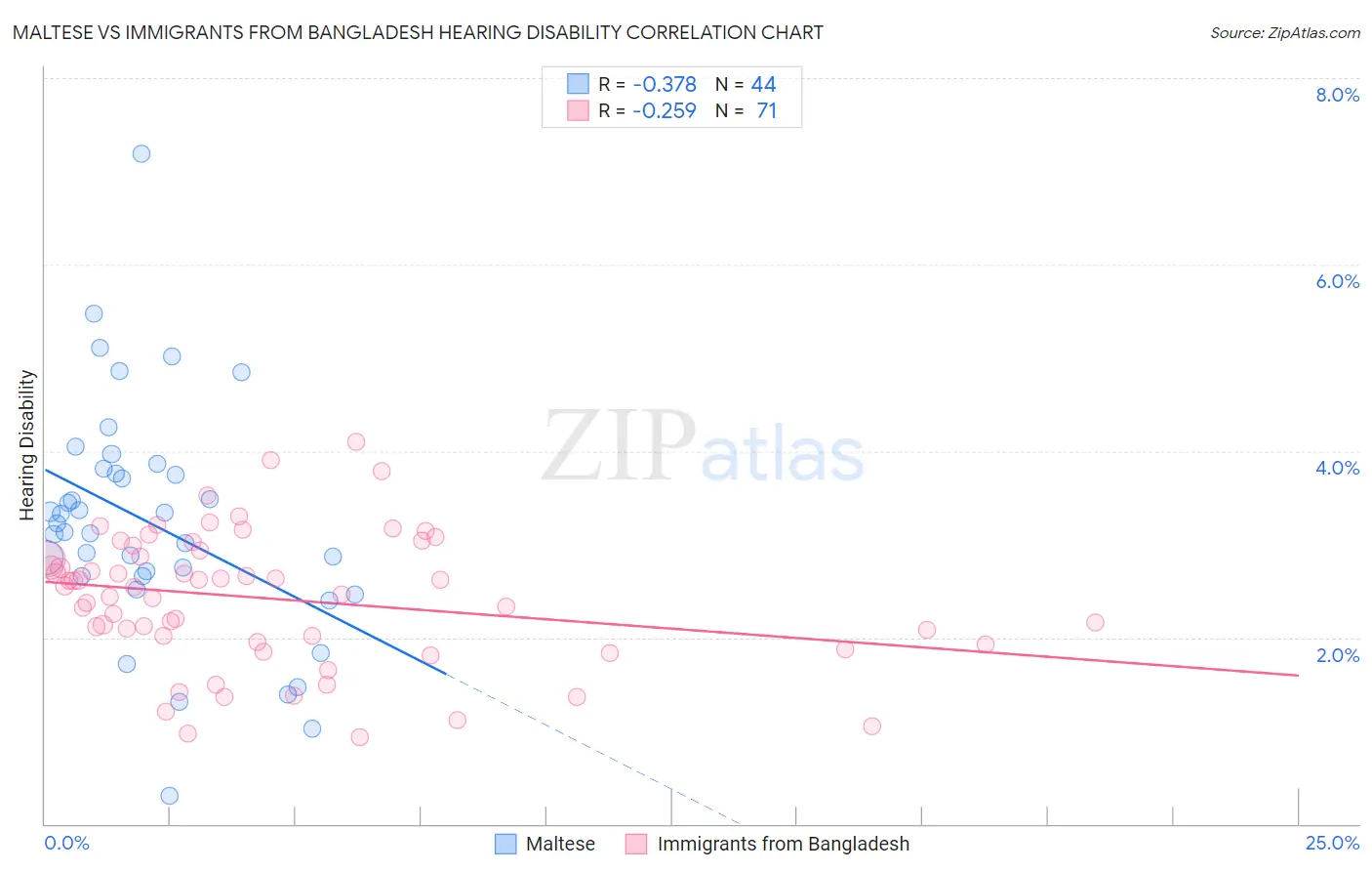 Maltese vs Immigrants from Bangladesh Hearing Disability Correlation Chart