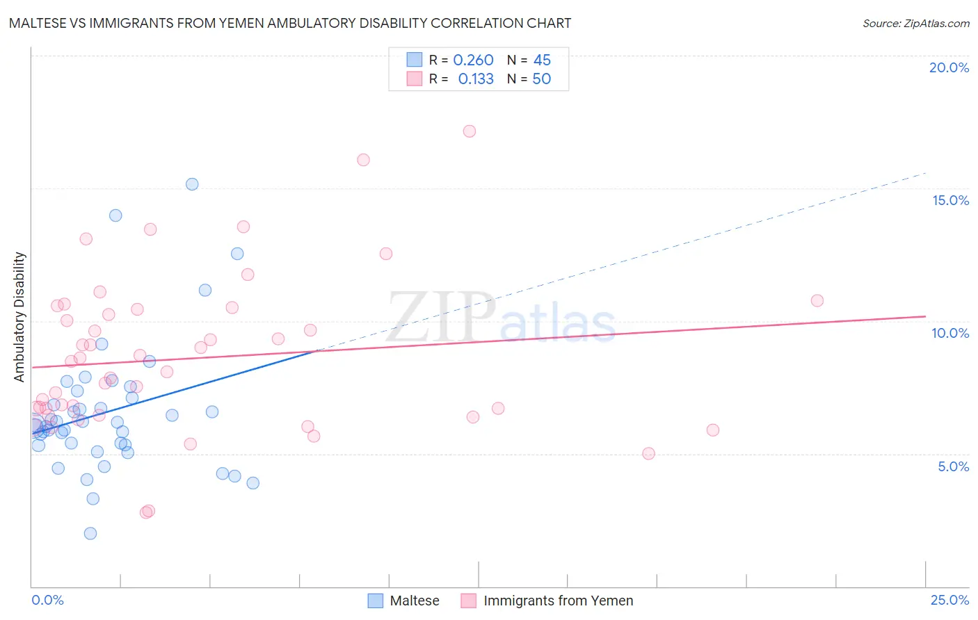 Maltese vs Immigrants from Yemen Ambulatory Disability Correlation Chart