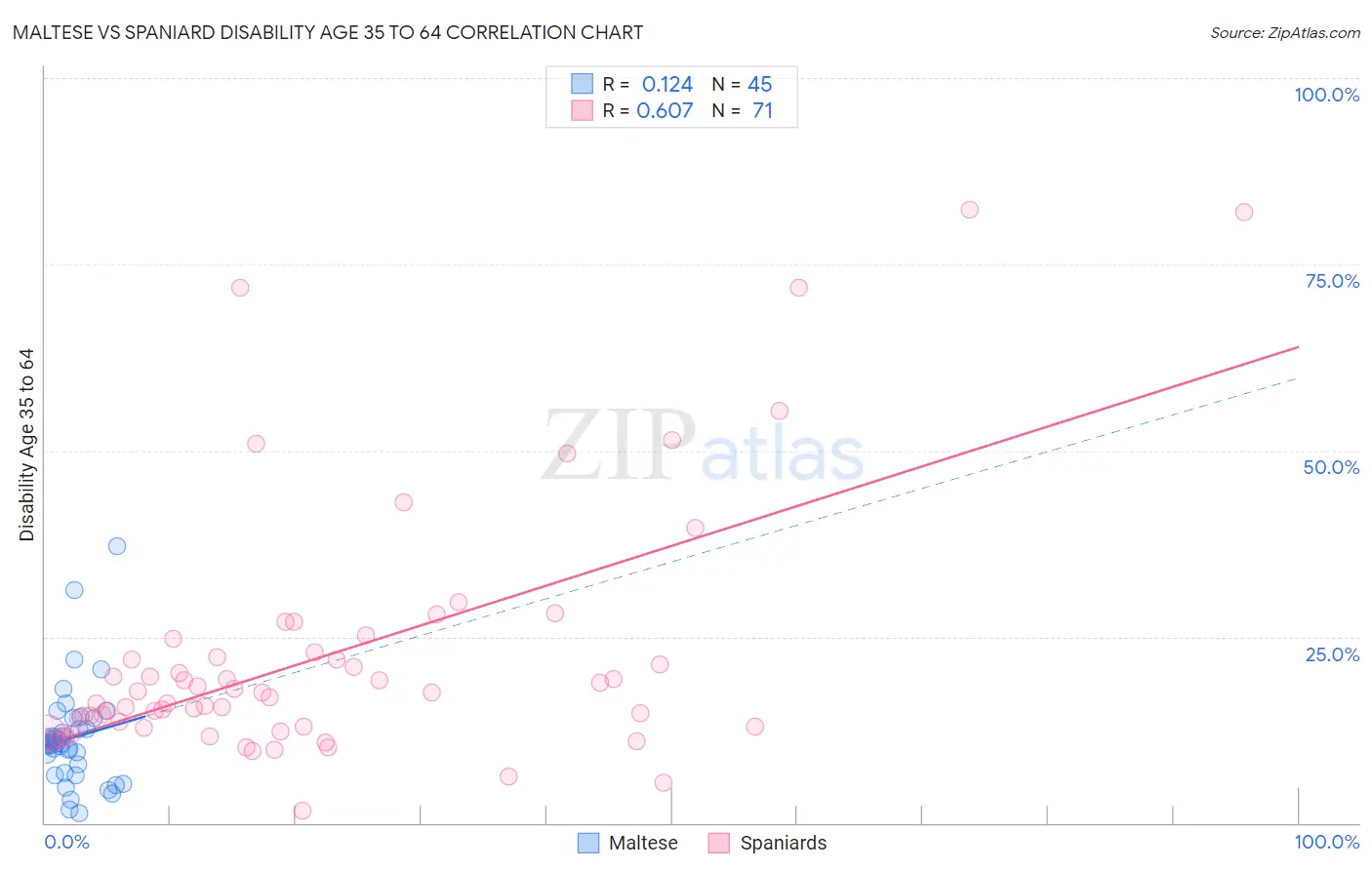 Maltese vs Spaniard Disability Age 35 to 64 Correlation Chart