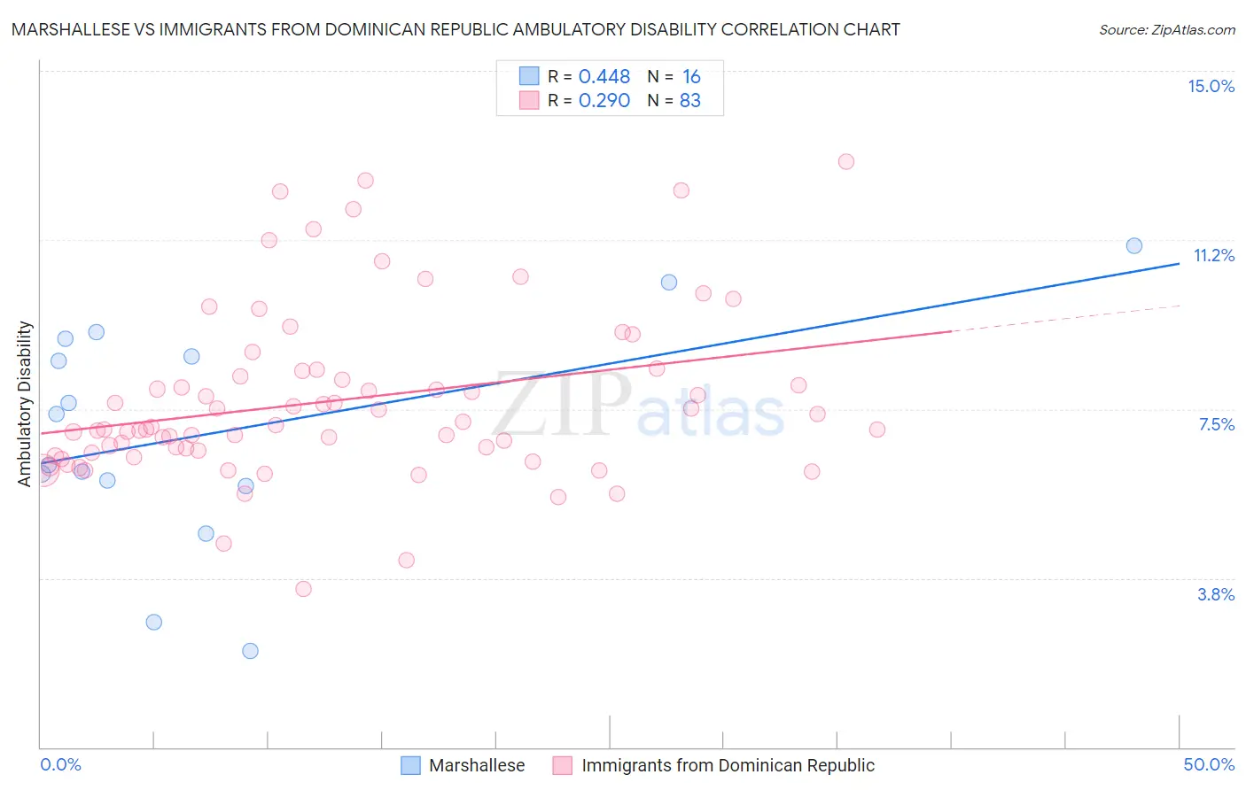 Marshallese vs Immigrants from Dominican Republic Ambulatory Disability Correlation Chart