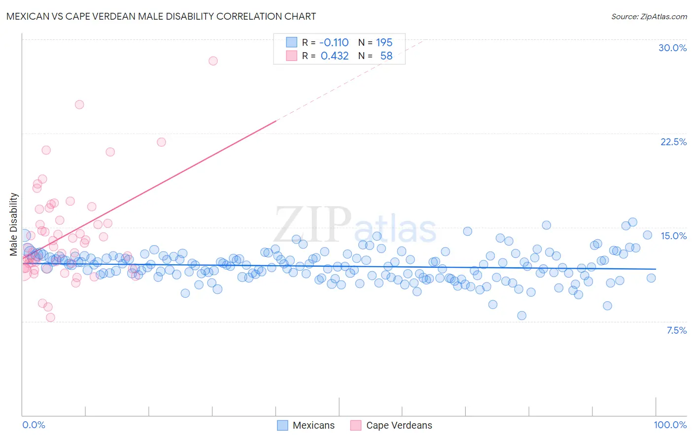 Mexican vs Cape Verdean Male Disability Correlation Chart