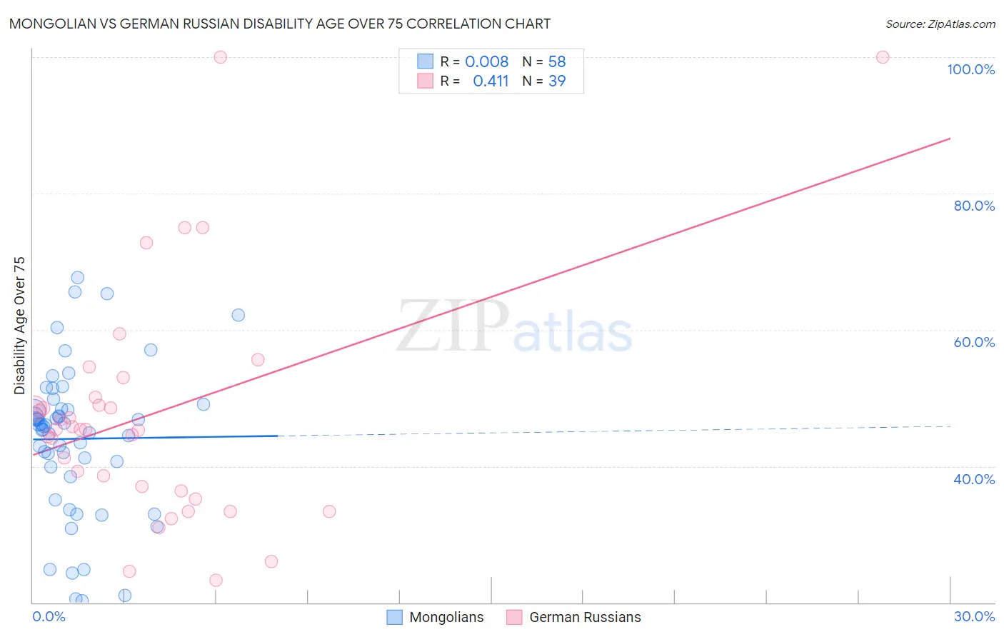 Mongolian vs German Russian Disability Age Over 75 Correlation Chart