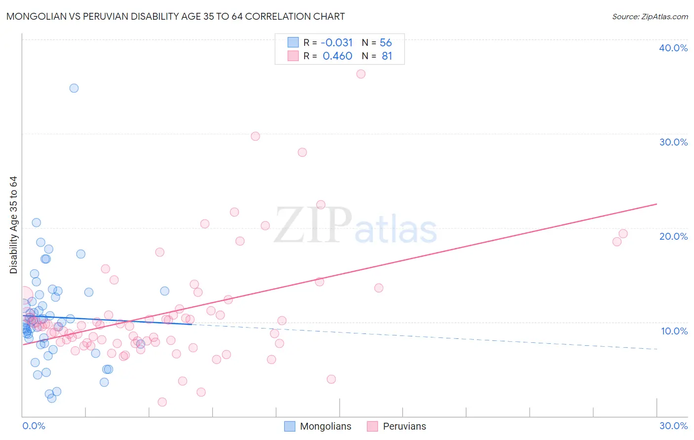 Mongolian vs Peruvian Disability Age 35 to 64 Correlation Chart