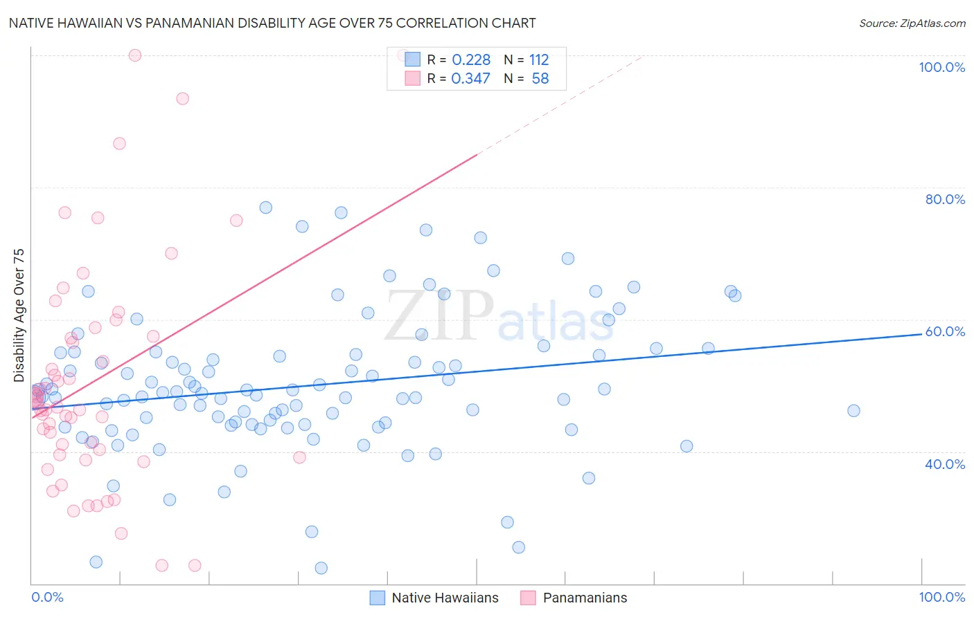 Native Hawaiian vs Panamanian Disability Age Over 75 Correlation Chart