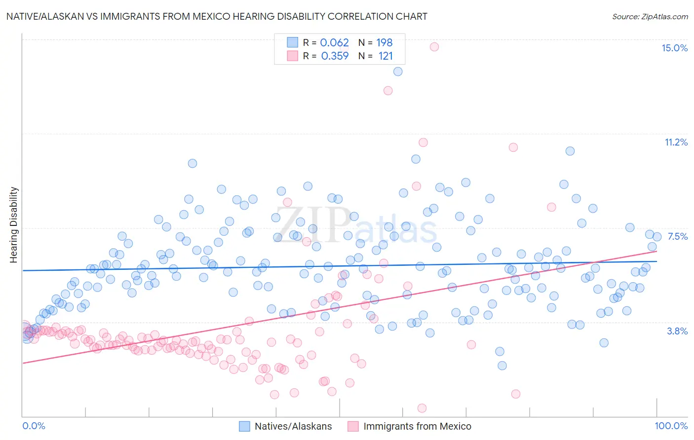 Native/Alaskan vs Immigrants from Mexico Hearing Disability Correlation Chart
