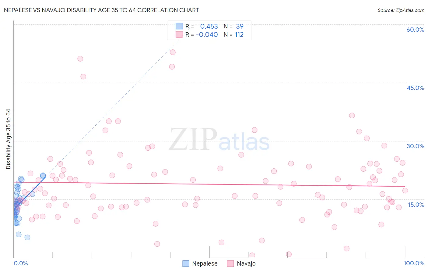 Nepalese vs Navajo Disability Age 35 to 64 Correlation Chart