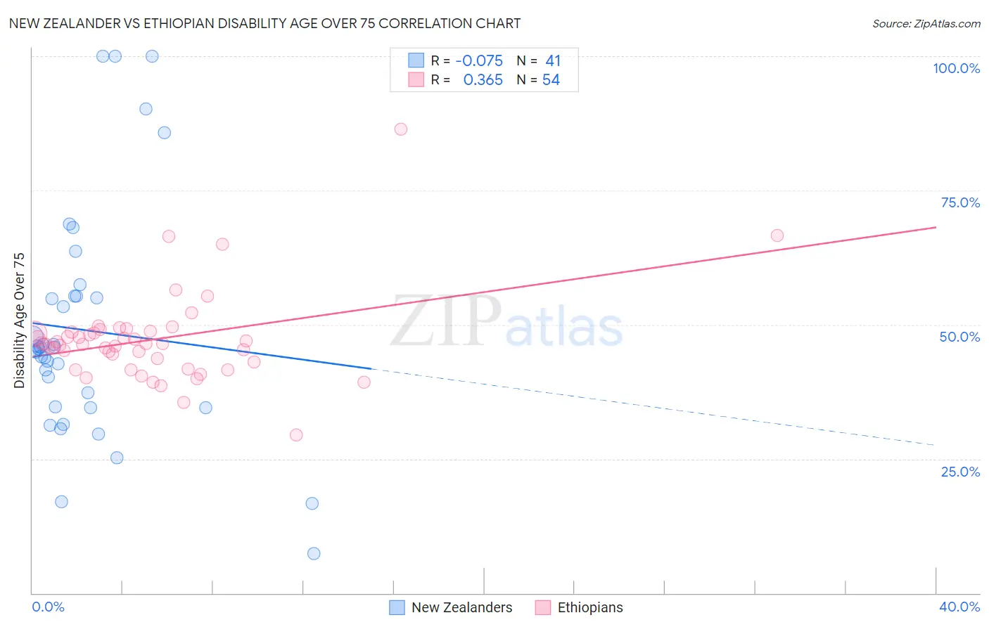 New Zealander vs Ethiopian Disability Age Over 75 Correlation Chart