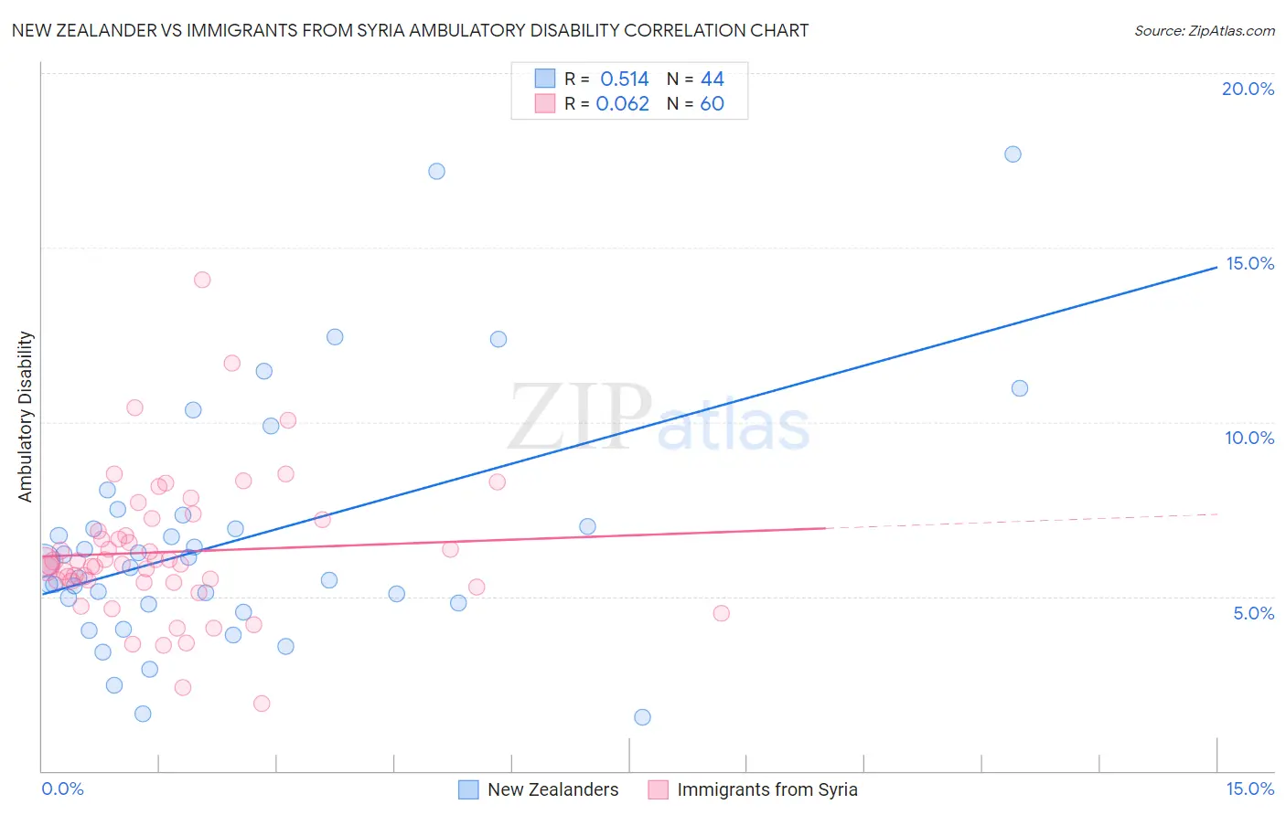 New Zealander vs Immigrants from Syria Ambulatory Disability Correlation Chart