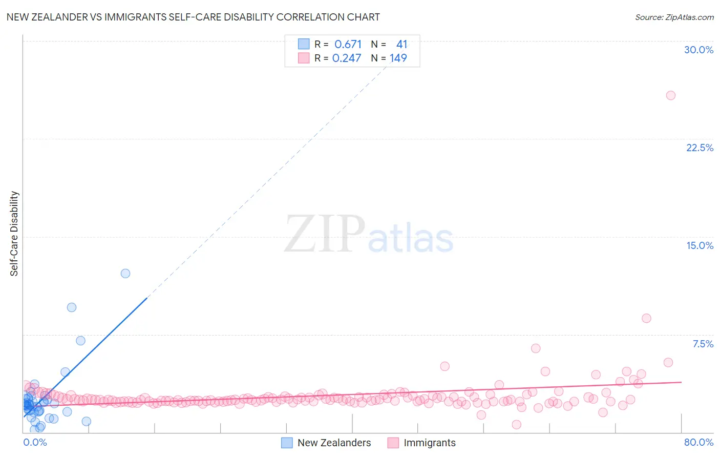 New Zealander vs Immigrants Self-Care Disability Correlation Chart