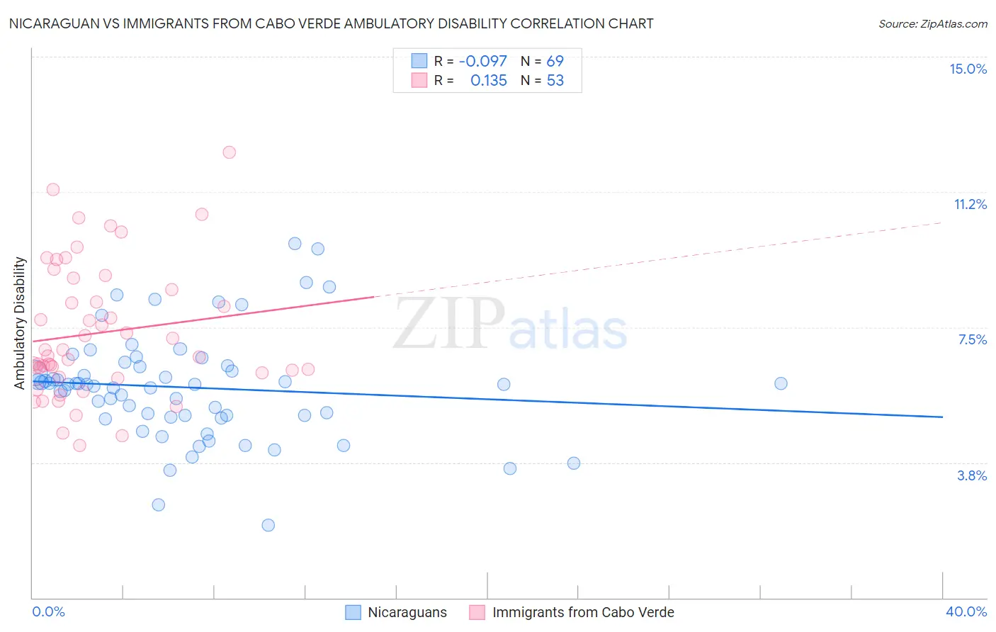 Nicaraguan vs Immigrants from Cabo Verde Ambulatory Disability Correlation Chart